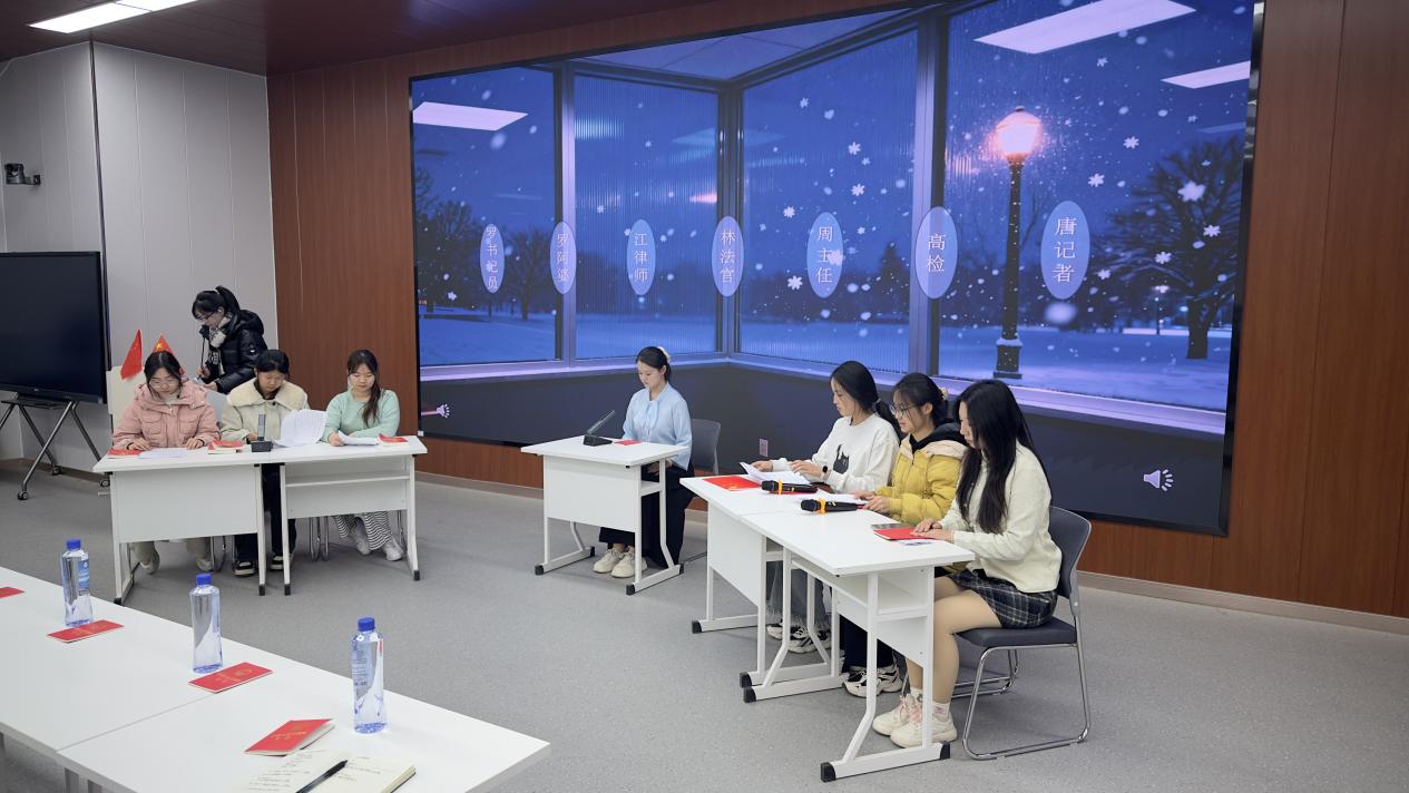 今年的“一堂特殊的宪法课”活动延续往年特色,以“小组共创、多元表达”为主线,学生自主组成学习团队,通过模拟法庭、宪法情景剧、法治辩论、原创歌曲、宪法诵读、手势舞等生动形式,诠释宪法条文与法治案例。现场气氛热烈,掌声不断,特别是模拟审判环节中,同学们严谨的法律论证与充满张力的演绎,展现出扎实的法学素养与青春担当。