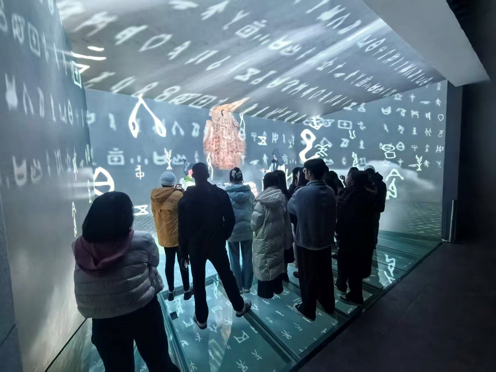 在互动体验区,同学们亲手制作甲骨文冰箱贴,用刻刀在陶土上复刻古老文字,感受先民造字的智慧。