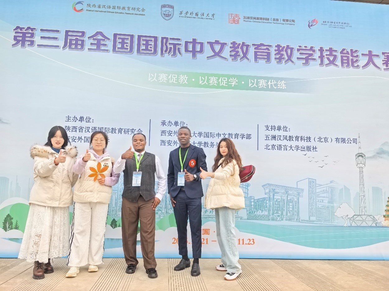 2025年11月22日、23日,我院组织国际中文教育研究生谢炎、杜云霞、陈邦桧,以及留学生穆子铭、李乐山,赴西安参加了第三届全国国际中文教育教学技能大赛,并围绕中国传统文化开展了为期两天的深度研学活动。此次活动由杨伦老师和杜文涛老师带队,旨在通过竞赛实践与文化体验相结合的方式,提升学生专业素养,深化国际学生对中华文化的理解。