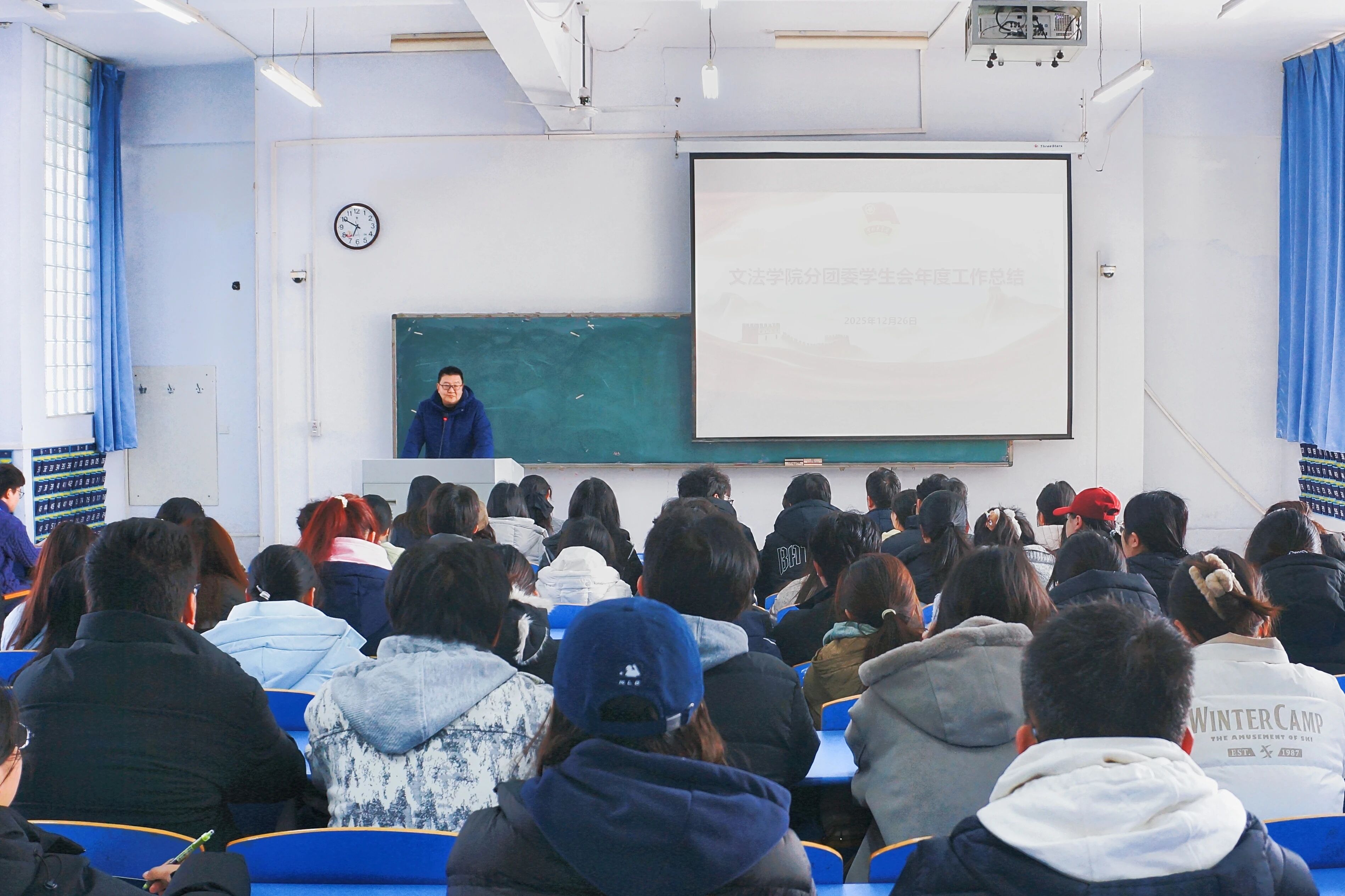 岁物丰成,薪传有自。12月26日,文法学院于05B401召开第六届分团委、学生会2025年度总结大会。学院党委书记李振宇,党委副书记郭之茵,党务专员、融媒体负责人董瑞林以及分团委、学生会全体成员参加会议,会议由分团委书记尚福星主持。