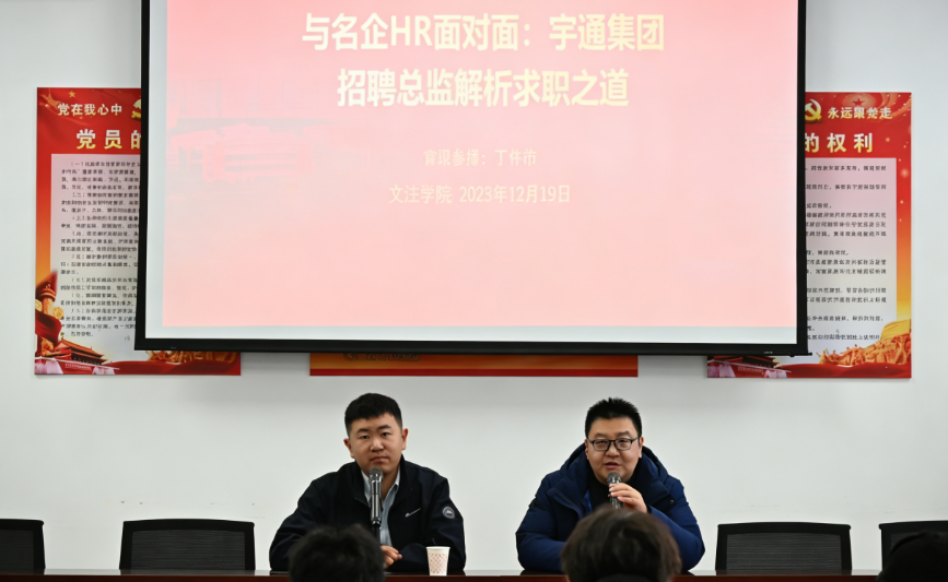 文法学院始终将学生职业生涯发展与高质量就业作为育人工作的核心环节,系统谋划、扎实推进。12月19日,学院特邀宇通集团招聘总监丁梓恒在05B417会议室举办“求职之道”专题讲座,以精准助力学生职业规划与就业能力提升。讲座由学院党委书记李振宇主持,各年级学生代表参与聆听。