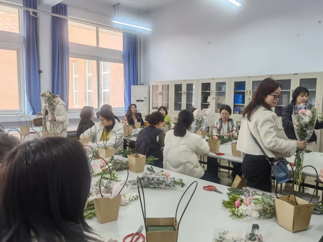 3月6日下午,由学院精心策划的"花语心声"主题插花活动温情启幕。活动现场化身春意盎然的伊甸园,粉雪山玫瑰讲述着讲台后的温柔坚守,紫色洋桔梗勾勒出办公室深夜的灯火,翠绿尤加利叶舒展着少女笔下诗行的生机,在老师们的巧手下,让每一枝花的姿态都成为独特的生命叙事。